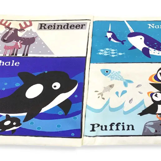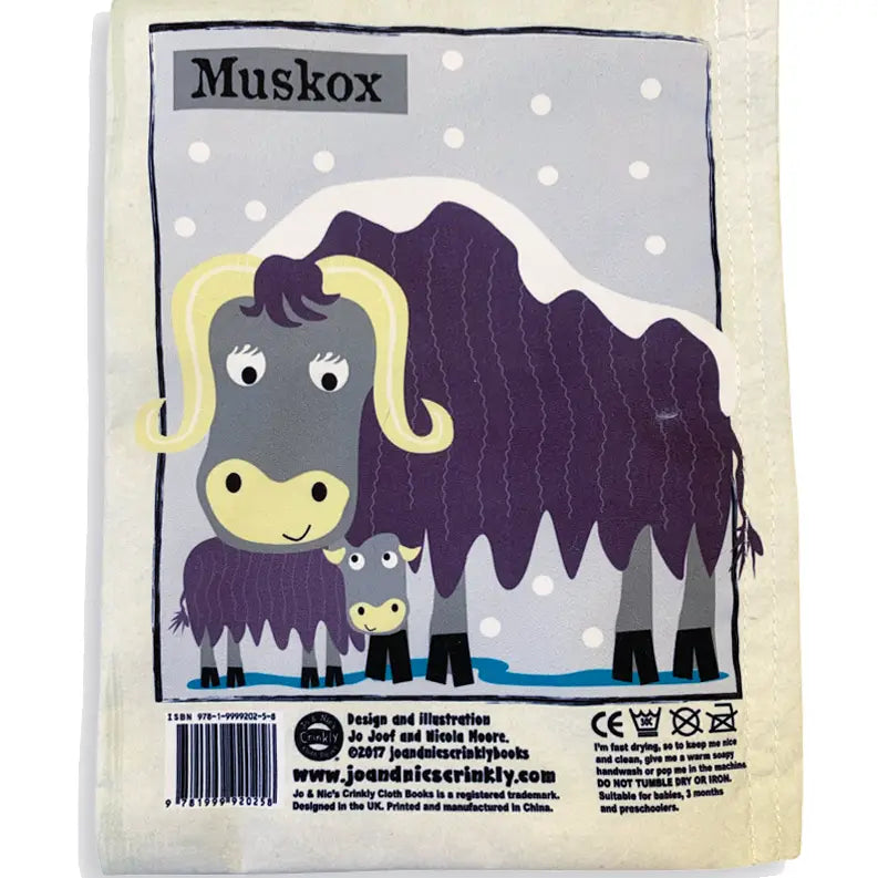 Nursery Times Crinkly Newspaper. Arctic Animals. Simple, cute illustrations of animals of the arctic and their young. UKCA/CE tested and machine washable. A practical, lightweight cloth book with crinkly pages. A great sensory toy. A unique gift. Packed in a card envelope.