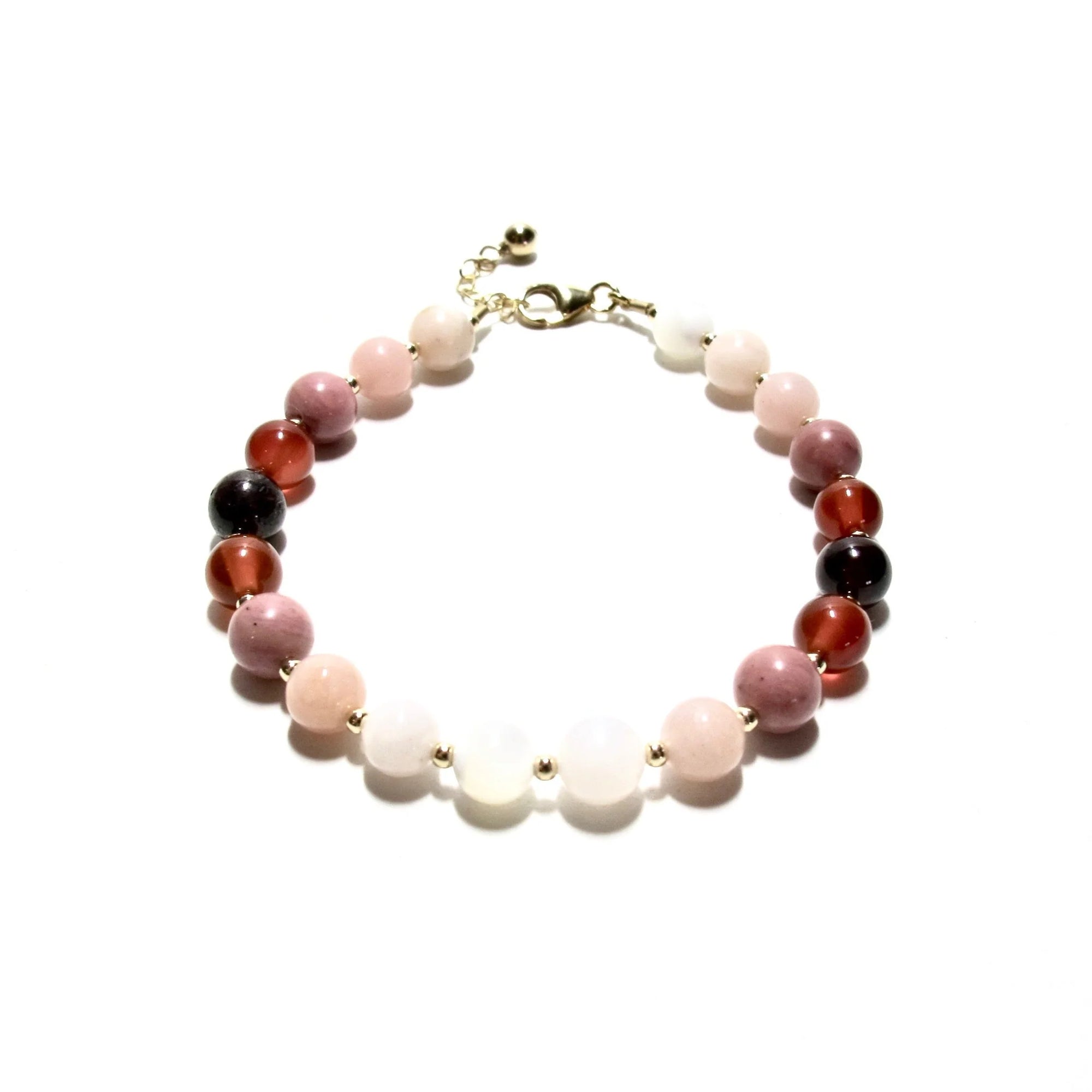 colourful semi precious round 6mm beads dotted with tiny gold filled beads, the bracelet has an adjustable gold filled chain and clasp, to be worn at your choice of length, between 17cm - 19.5cm