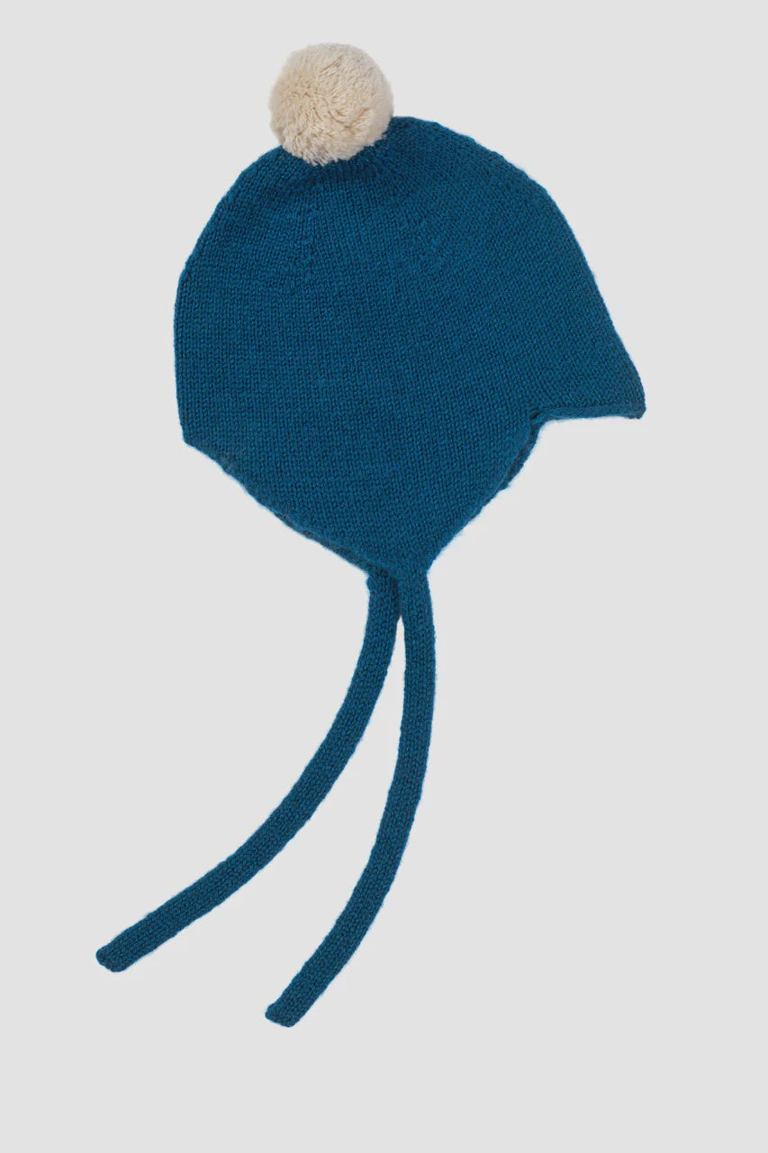 Cashmere Baby Bonnet, Calder with Ivory Pom-Pom