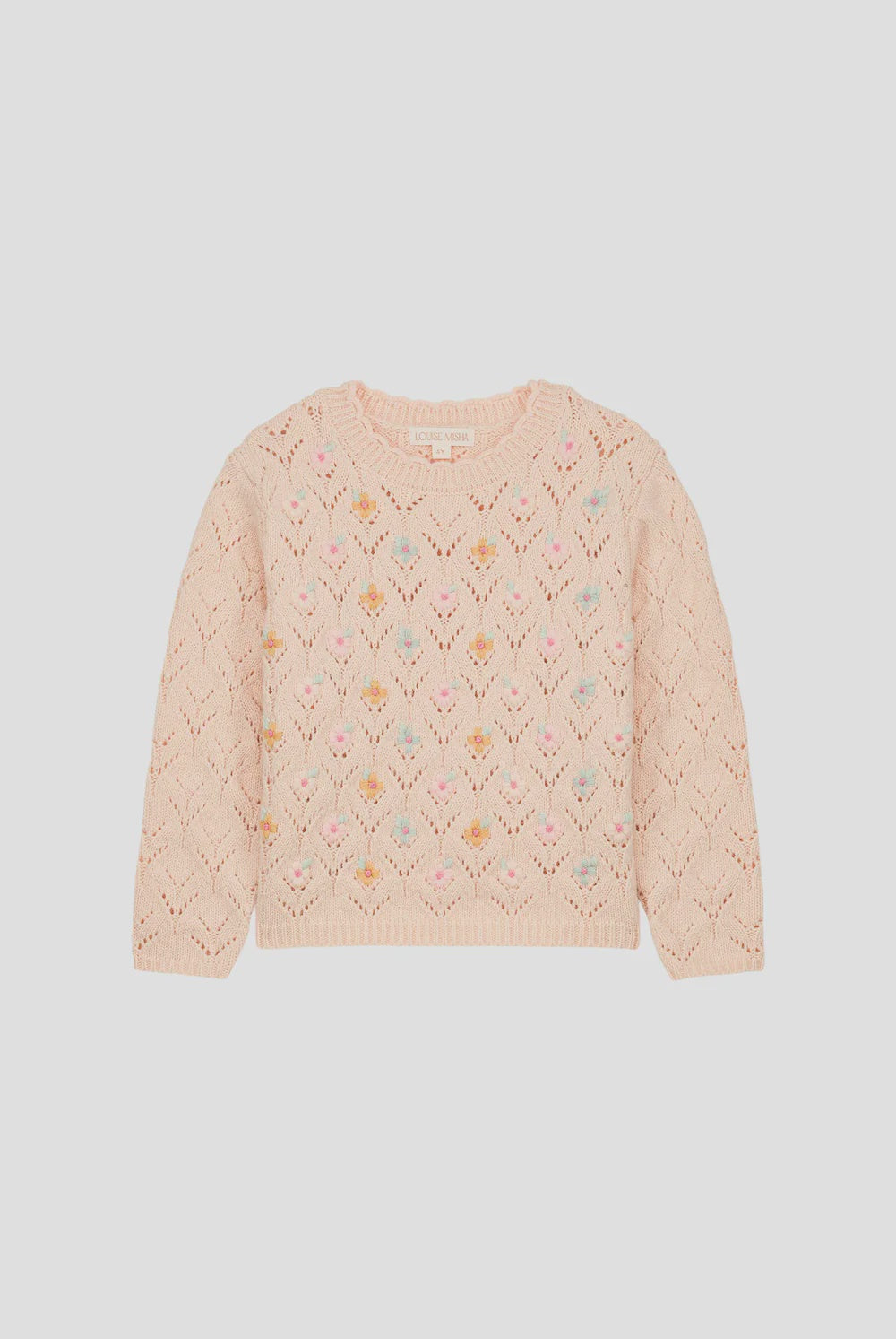 · Round neckline with hand-crocheted scalloped edges