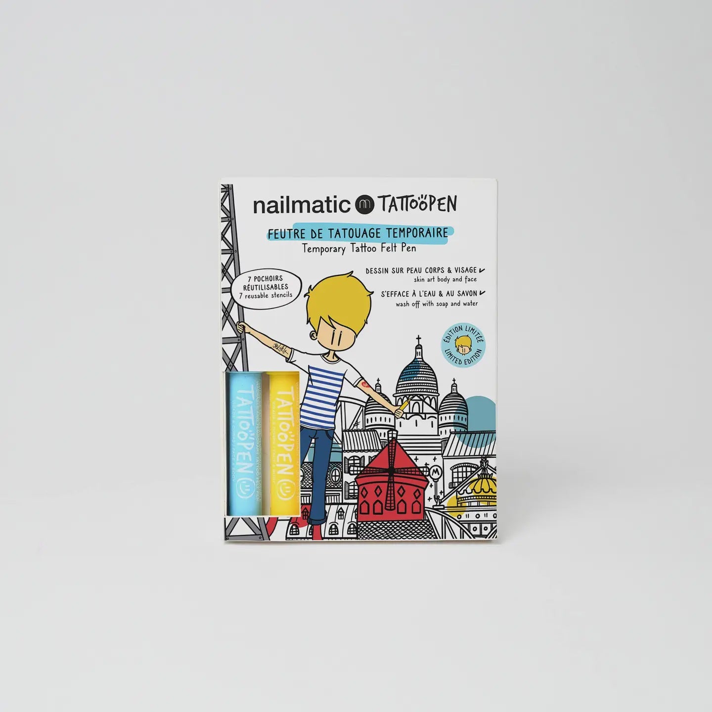 Nailmatic Tattoo Pen Set - Yellow & Blue with Stencils
