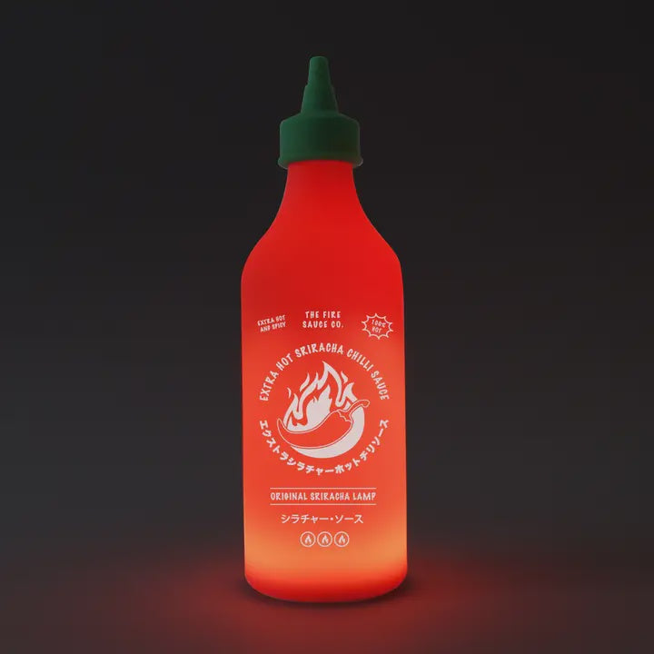 Add spice to any space with this quirky lamp shaped like a classic chilli sauce bottle. Illuminate your surroundings with a warm glow that flickers like the real thing. Perfect for a dash of flavour in your decor!