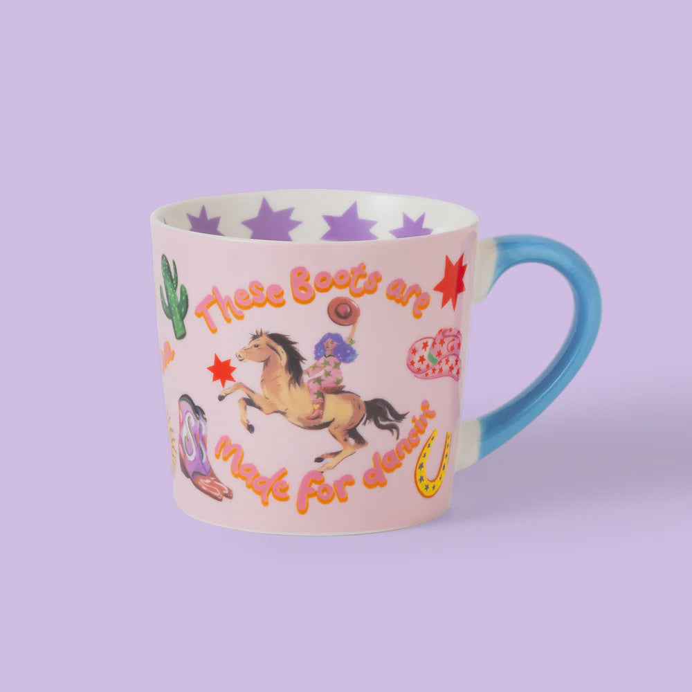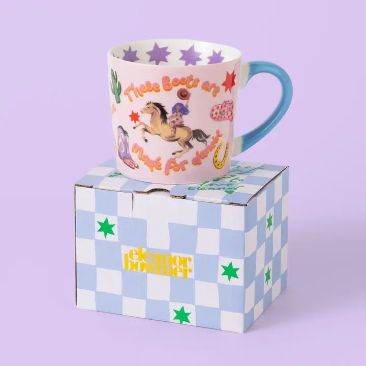 Kick up your heels with our These Boots Are Made For Dancing Mug! Featuring a fearless cowgirl ready for adventure, it’s sprinkled with playful western icons and starry details. This bold and charming mug is a daily reminder that life’s better when you dance through it - boots on, hat held high, and heart full. Perfect for dreamers, doers, and dancers at heart.