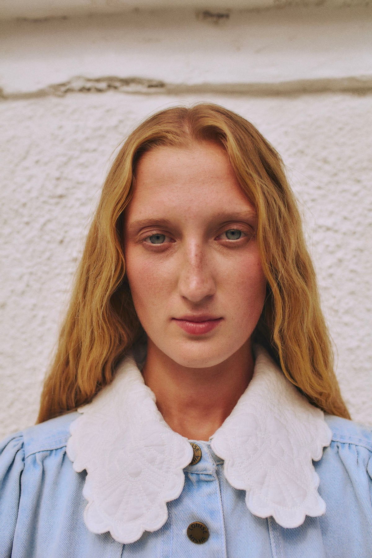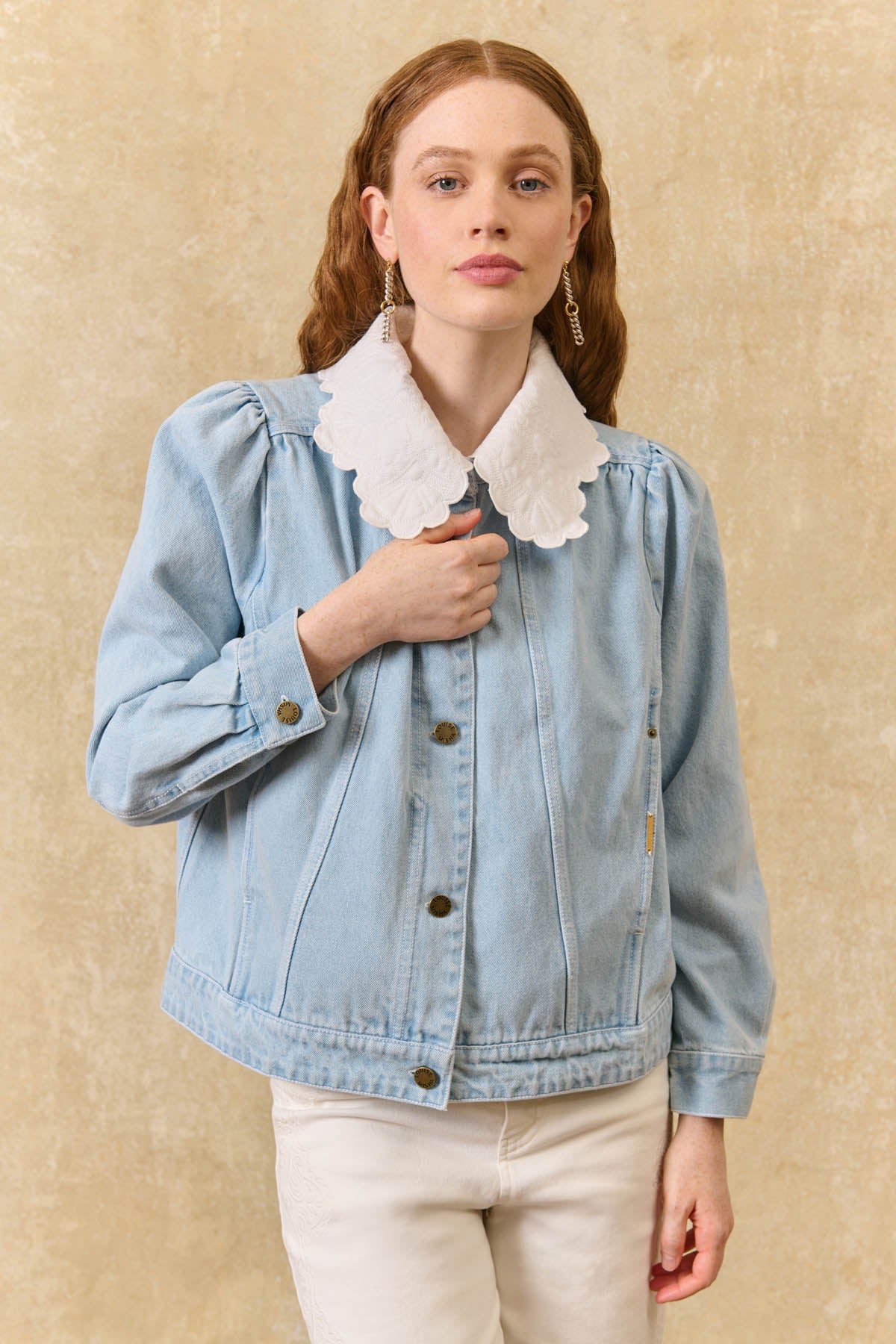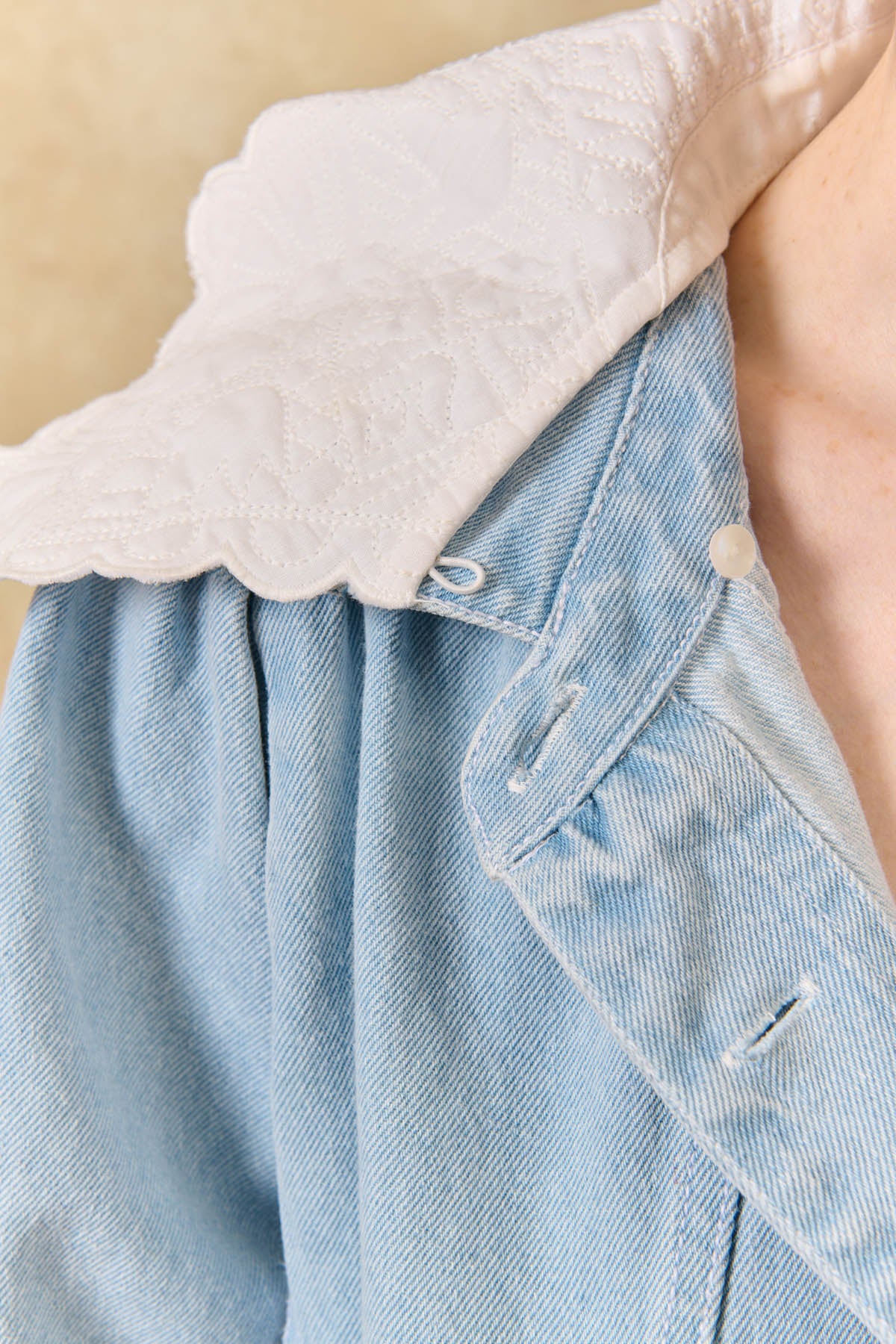 Large removable collar in cotton veil, quilted in boutis style with scalloped edges