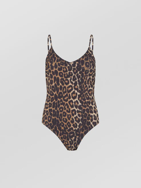 The Leopa Bea Swimsuit from Becksöndergaard is a stunning one-piece designed in a modern leopard print to brighten your summer. With adjustable straps, it ensures a perfect, tailored fit. Made from 85% recycled polyester and 15% elastane, this swimsuit is both stylish and sustainable. Available in multiple colors.