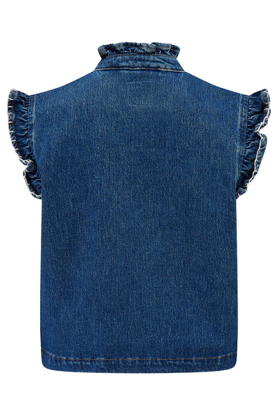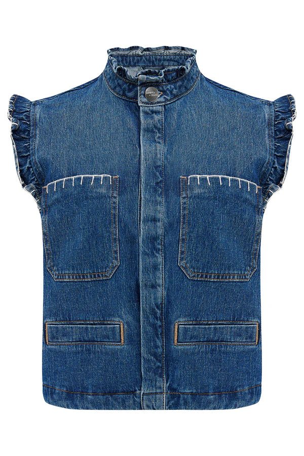 Button downSignature stitchingHigh frill collarStructured vestStretch feelMidweight fabric