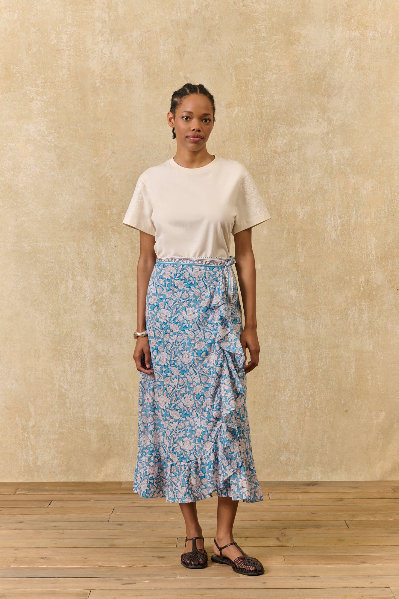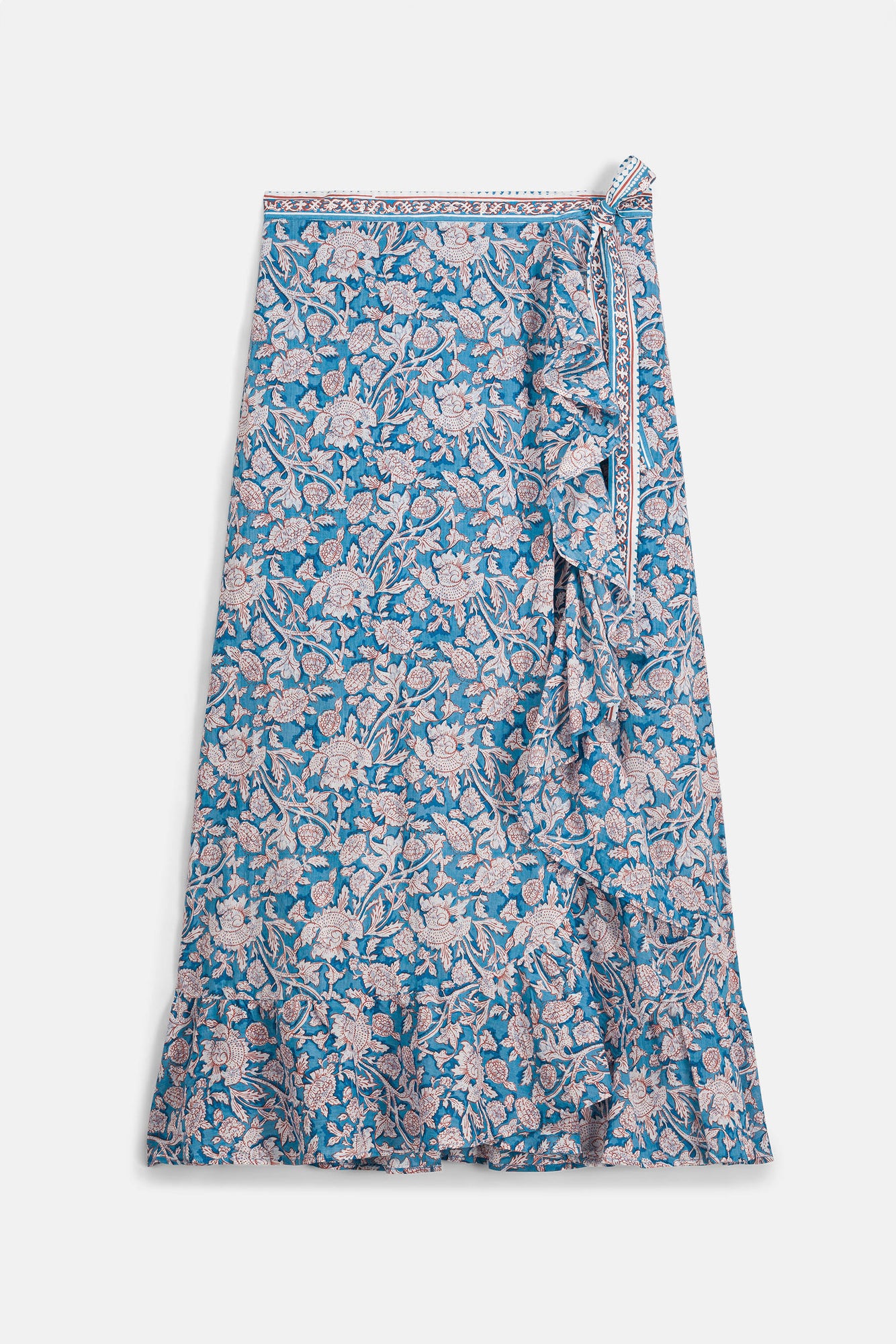 Full-length ruffle, from the waist down to the bottom, including the wrap-around front.