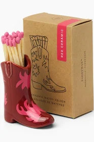 Includes: 25 colorful safety matches with ceramic cowboy boot match holder