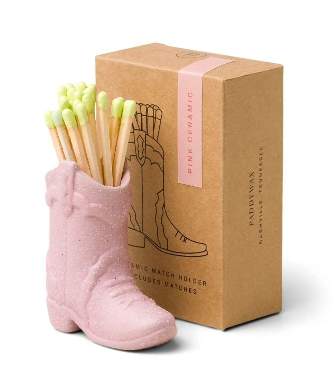 We're head over boots for our home in Nashville, TN! This vintage-inspired ceramic cowboy boot match holder includes 25 safety matches that are easily lit with a strike on the bottom of the boot! After the safety matches run out, this holder is compatible with any match and can provide light by striking on the rough ceramic surface. Whether you are daydreaming about being back in the Music City or wanting a Western vibe, these ceramic boot and hat accessories make the perfect gift set or bookshelf accessory.