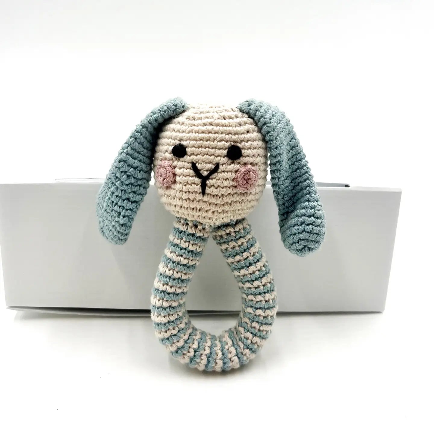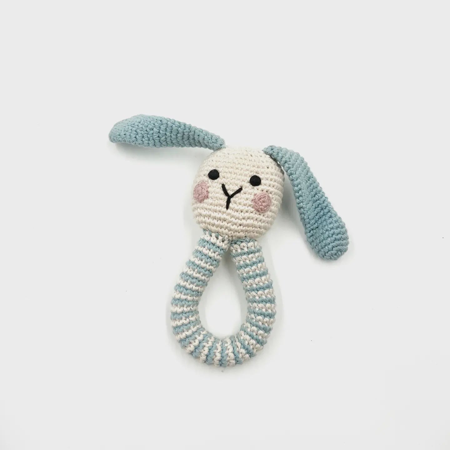 Crochet Baby Ring Bunny Rattle Duck Egg Blue