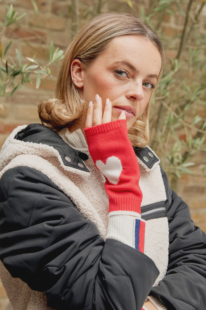Merino Wool Fingerless Heart Gloves- Red/ Cream