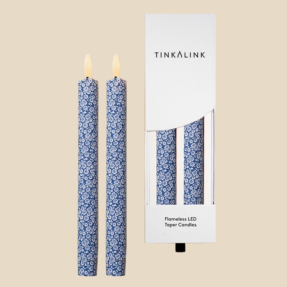 Morning Glory blends white blooms with a soft, mid-blue ground for a look that’s fresh, timeless and quietly romantic. This flameless LED taper candle brings gentle light to any setting—no wax, no mess, just effortless charm from dawn to dusk.
